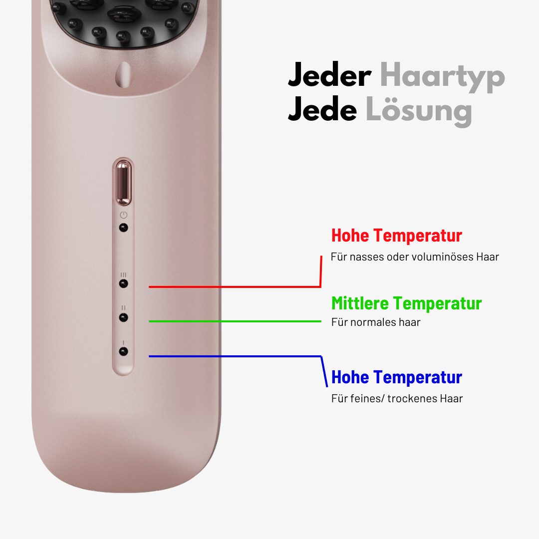 Der ToGo Haarstyler ist nicht nur perfekt für unterwegs, sondern funktioniert auch bei jedem Haartyp. Damit du nie wieder das Problem hast, dass er bei dir nicht funktioniert, haben wir unseren ToGo extra mit drei verschiedenen Hitzestufen ausgestattet.