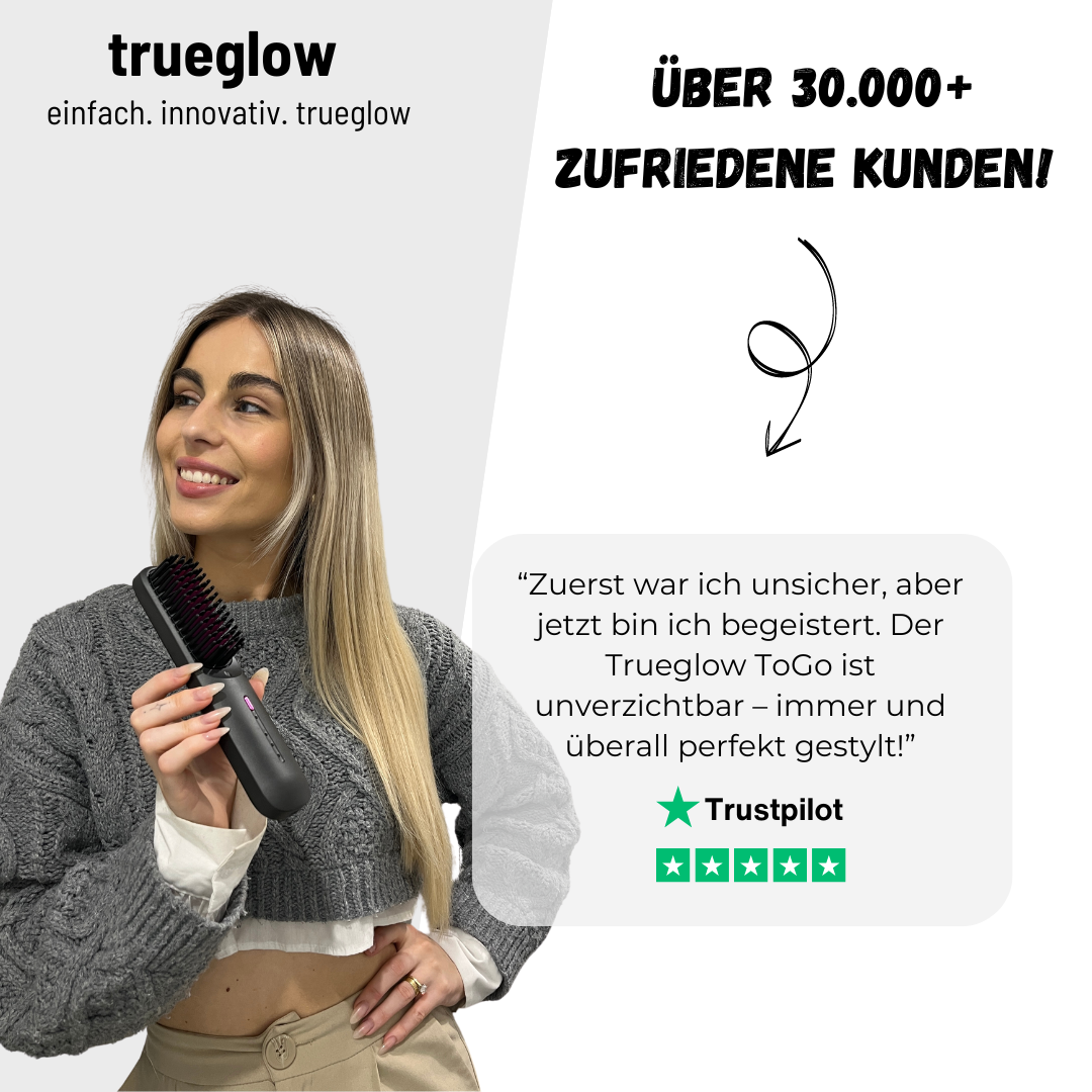 Der TrueGlow ToGo! revolutioniert das Haarstyling mit seinem einzigartigen, patentierten System. Die Kombination aus Hitzeschutz, fortschrittlichen Heizborsten und einem leistungsstarken Heizelement ermöglicht professionelles Styling direkt in deiner Handtasche.