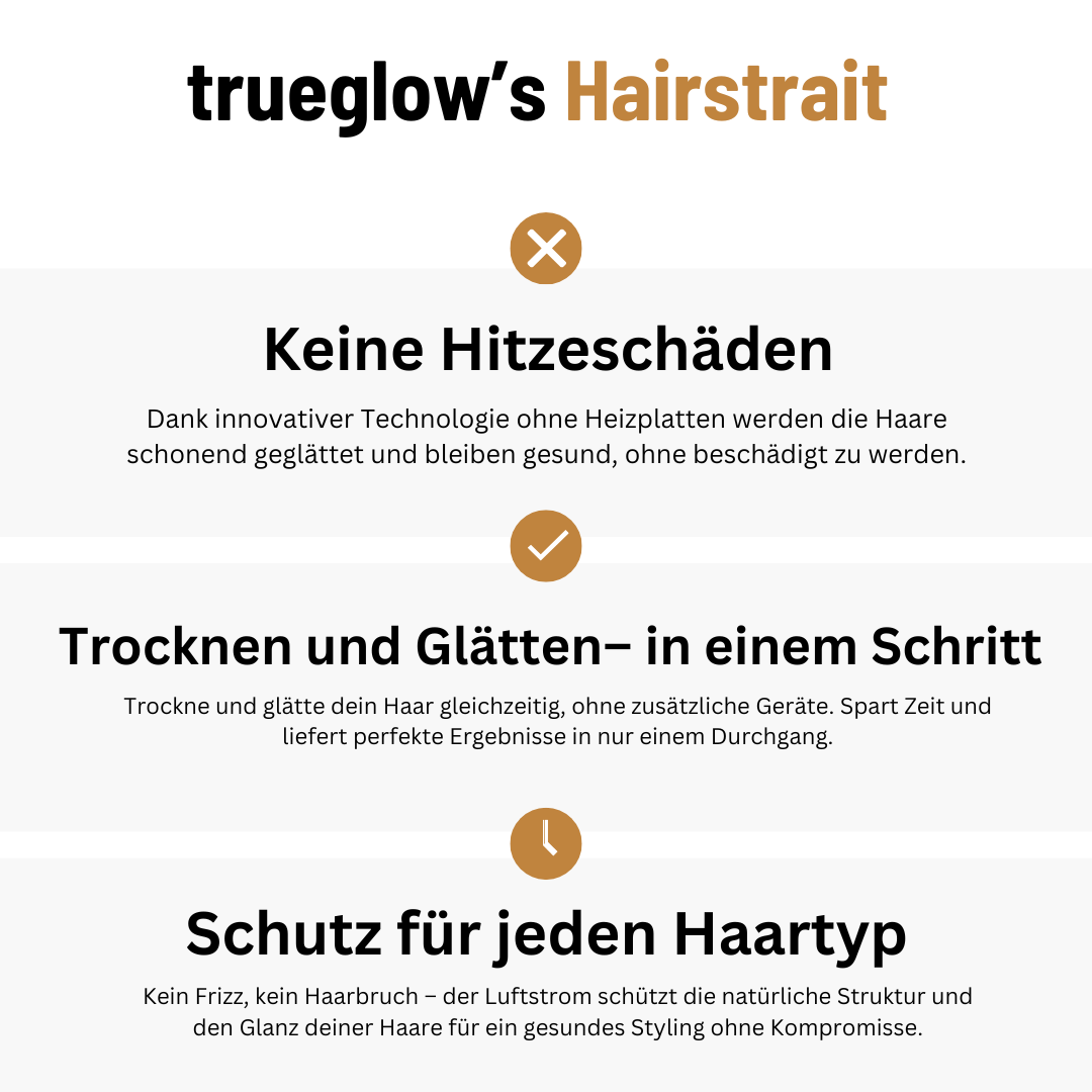 Nach nur wenigen Anwendungen spürst du, dass dein Haar wieder gesünder und splissfreier wird, dank der hitzefreien Luftglättung unseres Hairstrait´s.